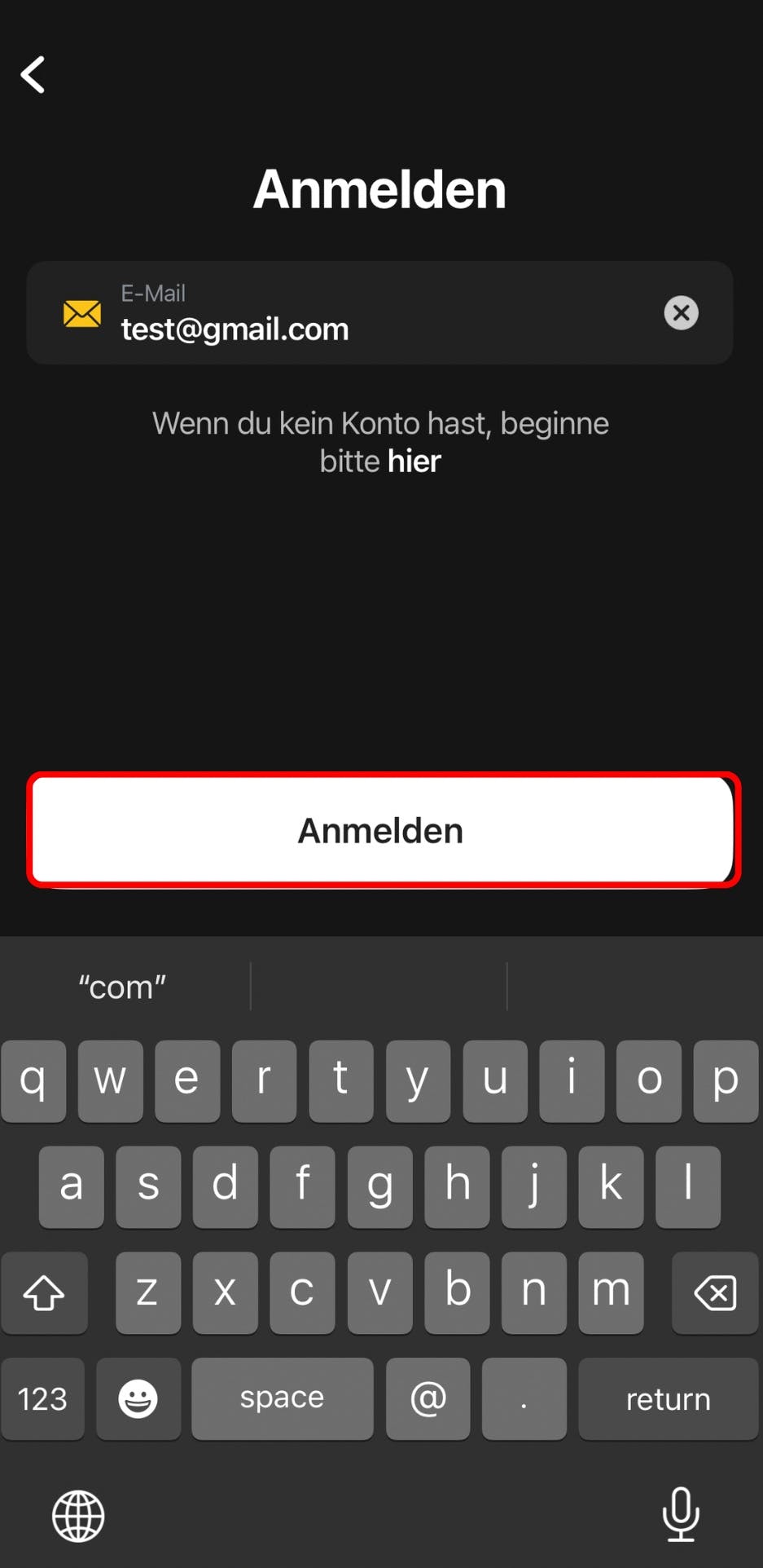 4. Tippe auf den Button Anmelden, um dich wie unten gezeigt in dein Konto einzuloggen.