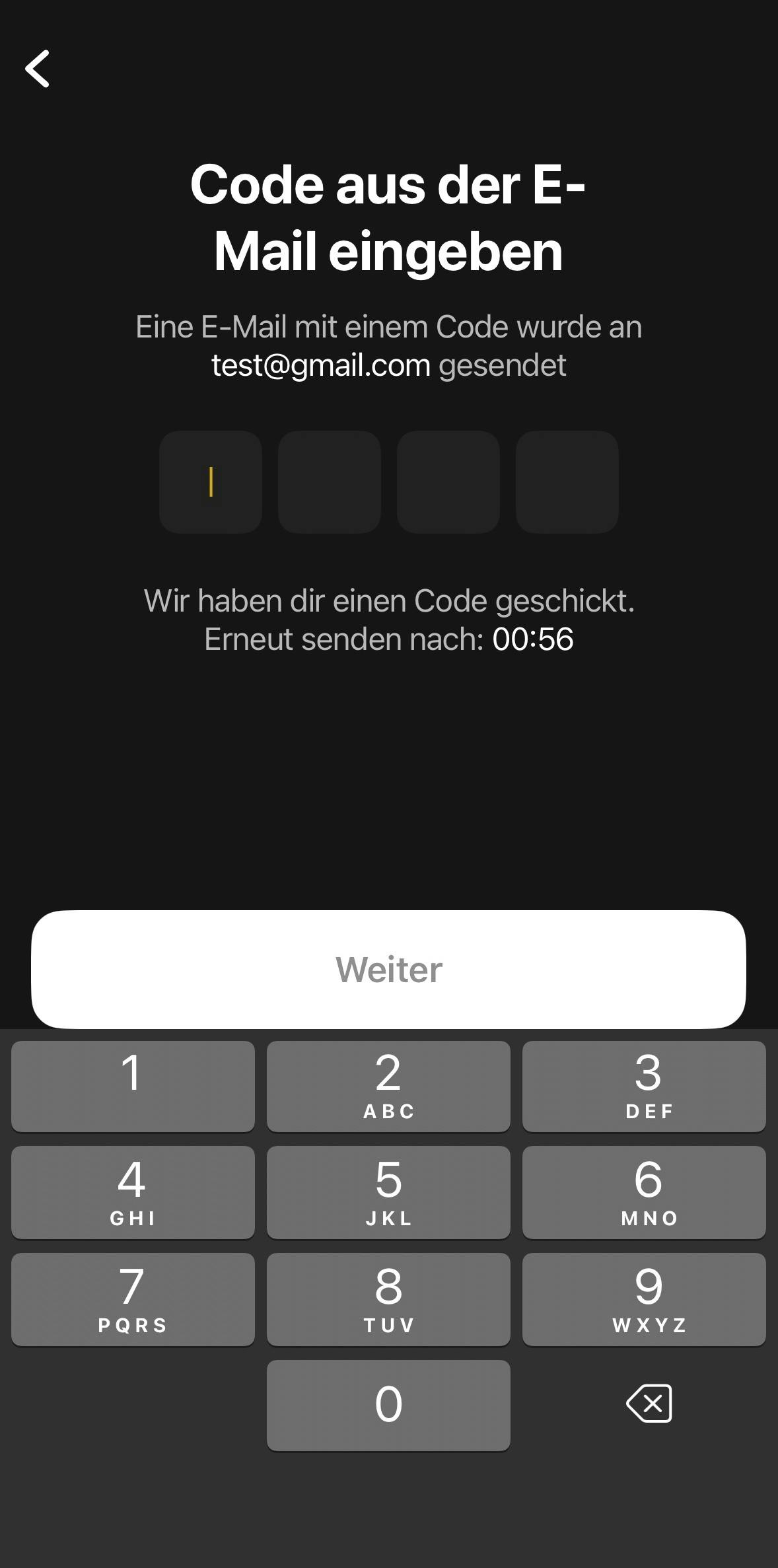 5. Gib den Sicherheitscode ein, der an deine E-Mail-Adresse gesendet wurde.