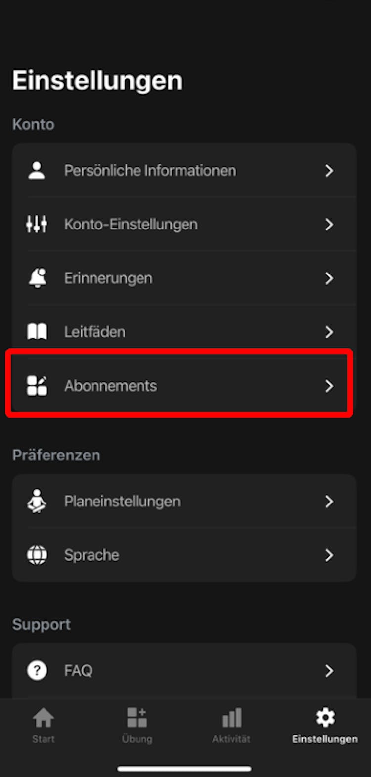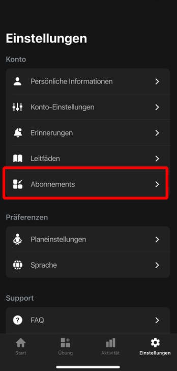 4. Gehen Sie zum Bereich Abonnement. Dort sehen Sie die Informationen zu Ihrem aktuellen Abonnement.