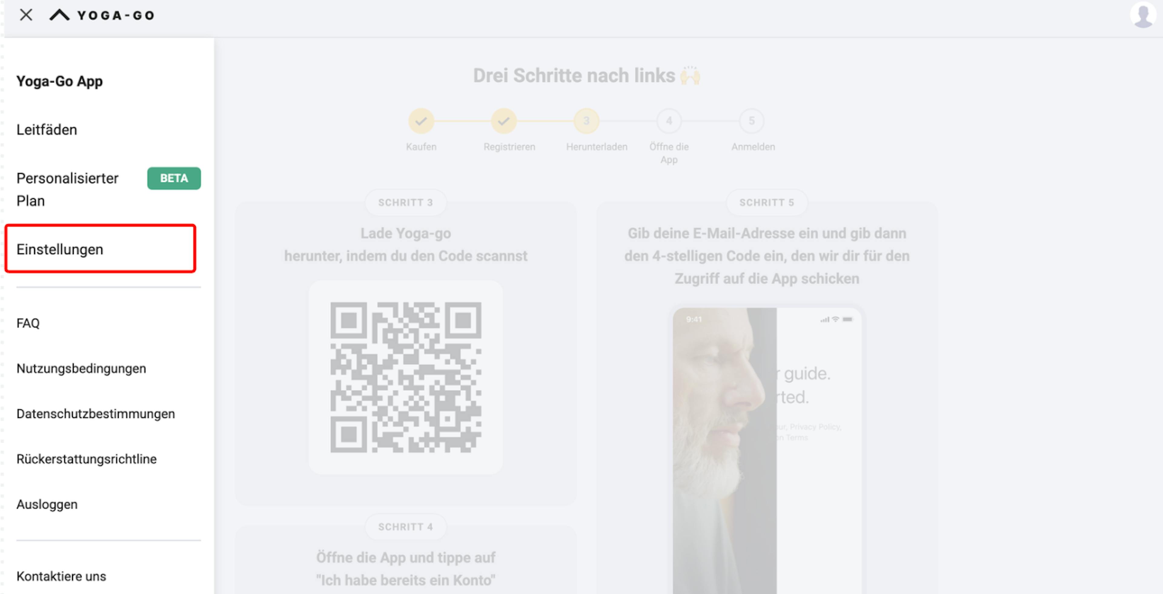 - Öffnen Sie den Tab Einstellungen.