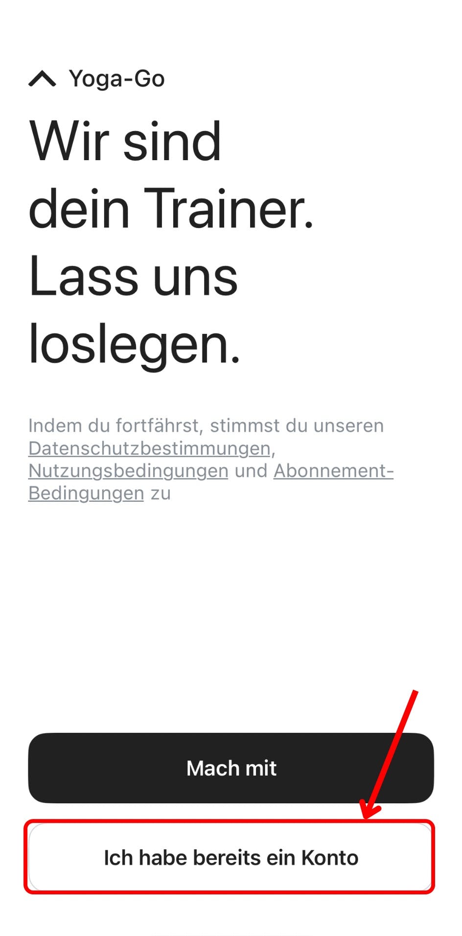 2. Öffnen Sie die App und tippen Sie auf die Schaltfläche Ich habe bereits ein Konto auf dem ersten Bildschirm.