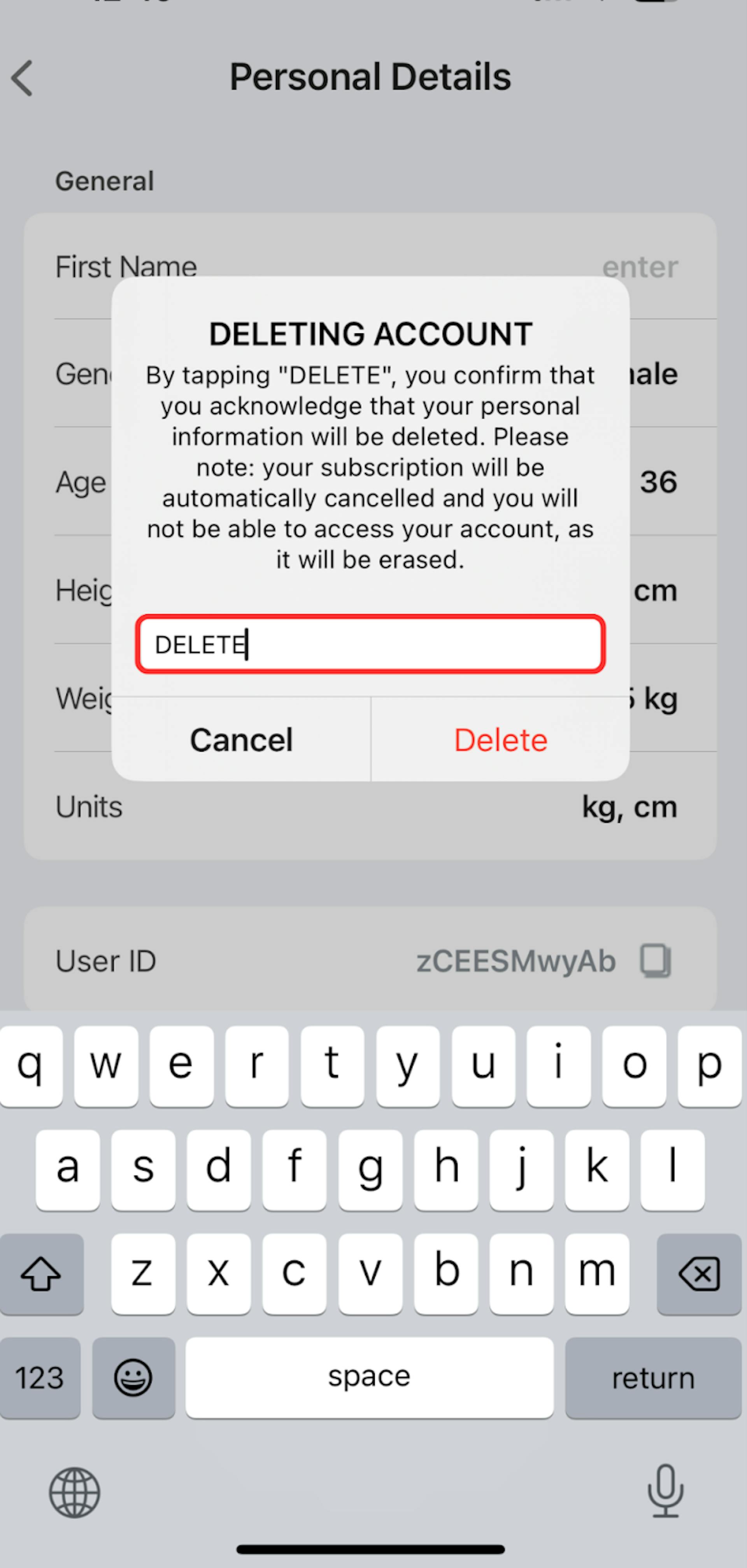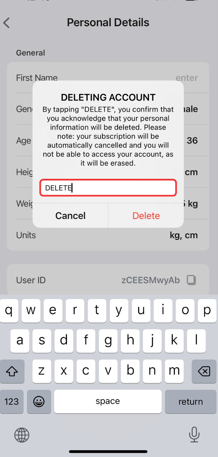 The deletion of personal data will result in subscription cancellation. If you wish to continue using the Yoga-Go app until the end of the billing period, contact our support team for assistance in regaining access to the app.