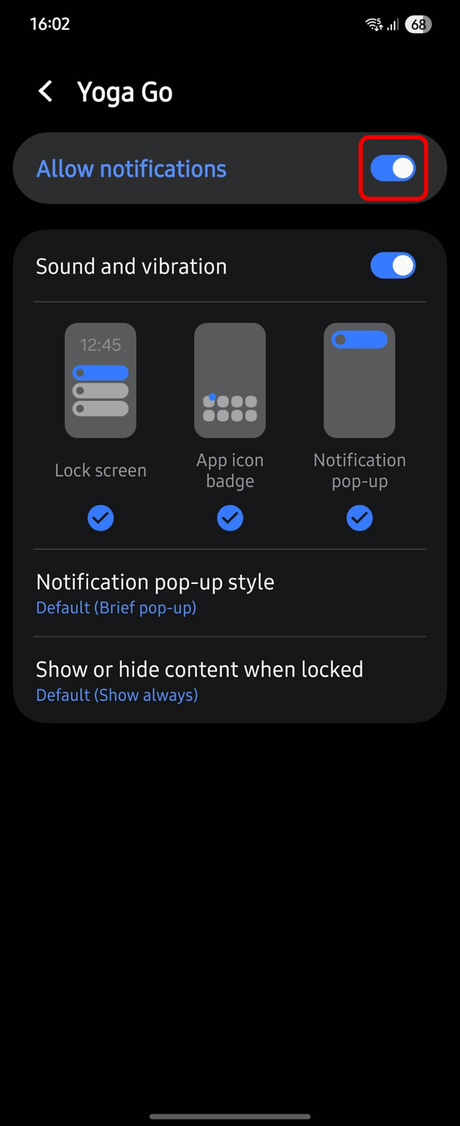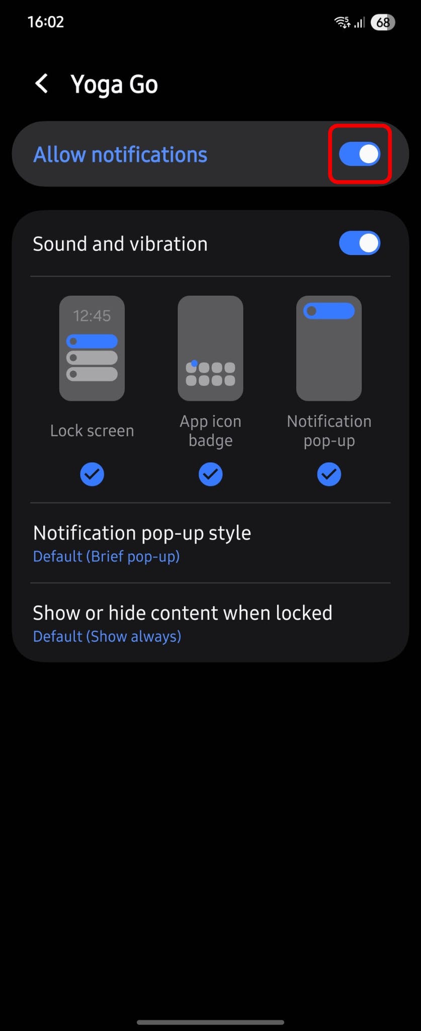 How can I turn off / on Yoga-Go notifications?