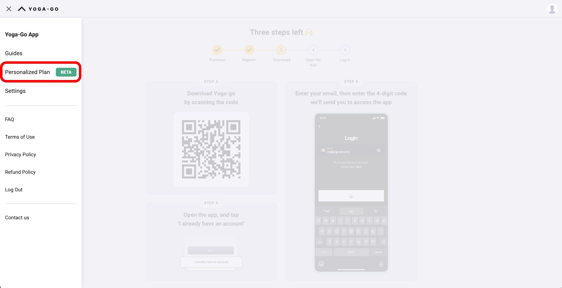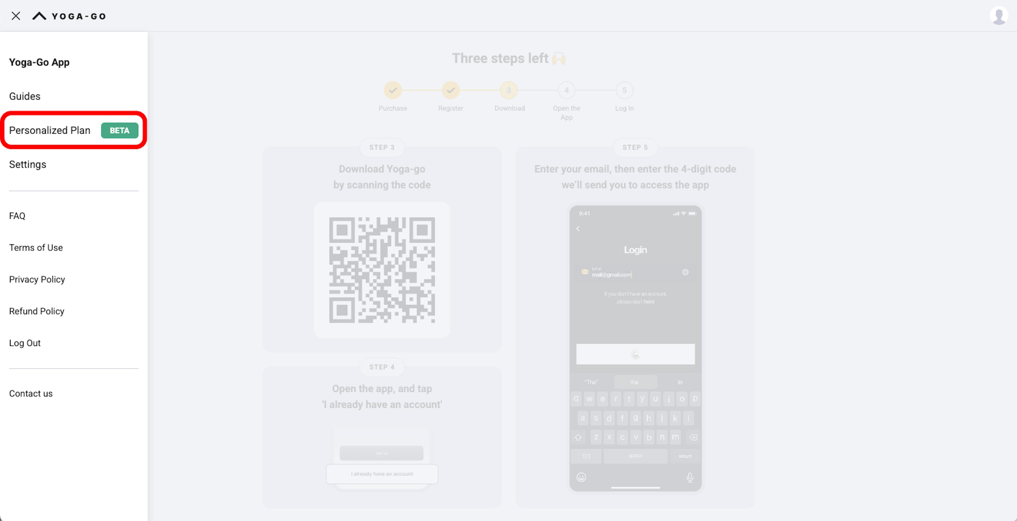 Once you’ve entered your Web Cabinet in the web account menu, find and tap the Personalized Plan button to enjoy your favorite asanas on your computer.