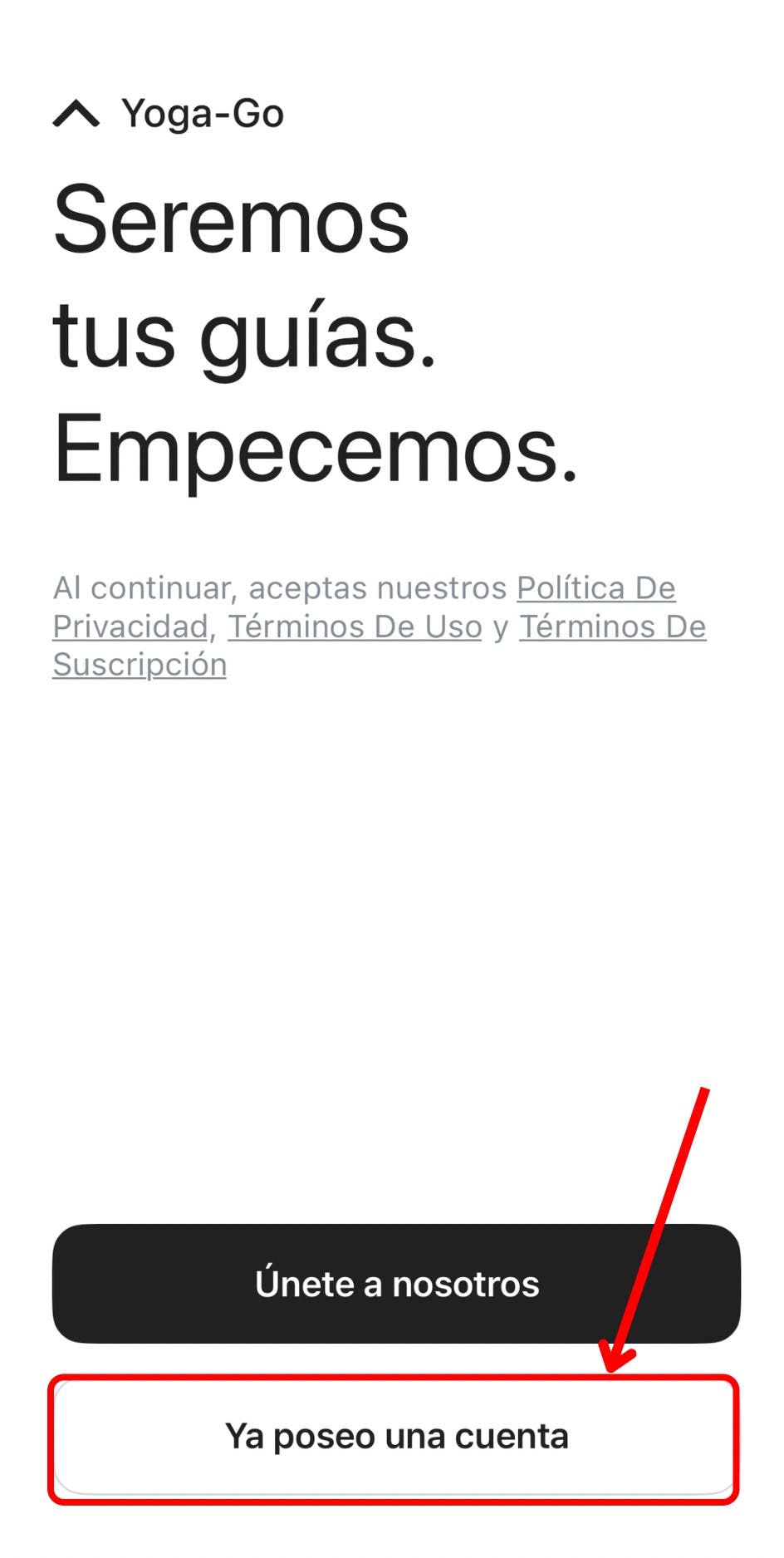 2. Abre la aplicación y pulsa el botón Ya poseo una cuenta en la primera pantalla.