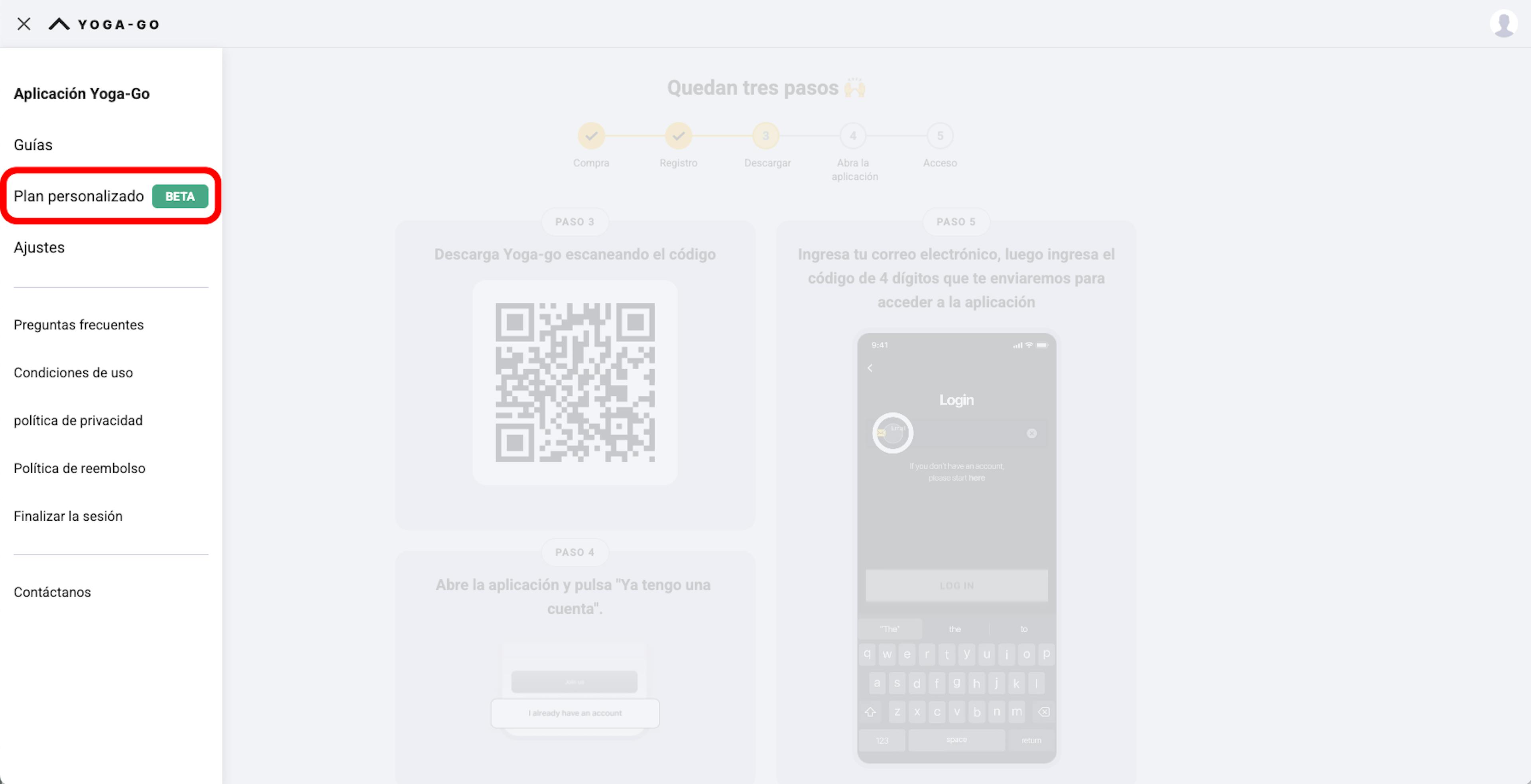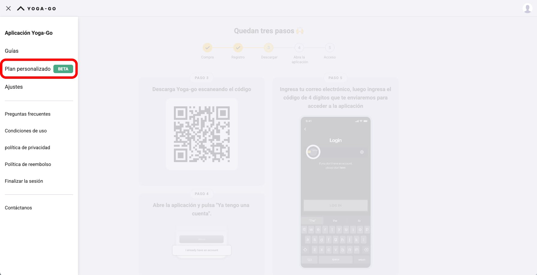 Una vez hayas accedido a tu Panel Web en el menú de la cuenta web, busca y pulsa el botón Plan Personalizado para disfrutar de tus asanas favoritas en tu ordenador.