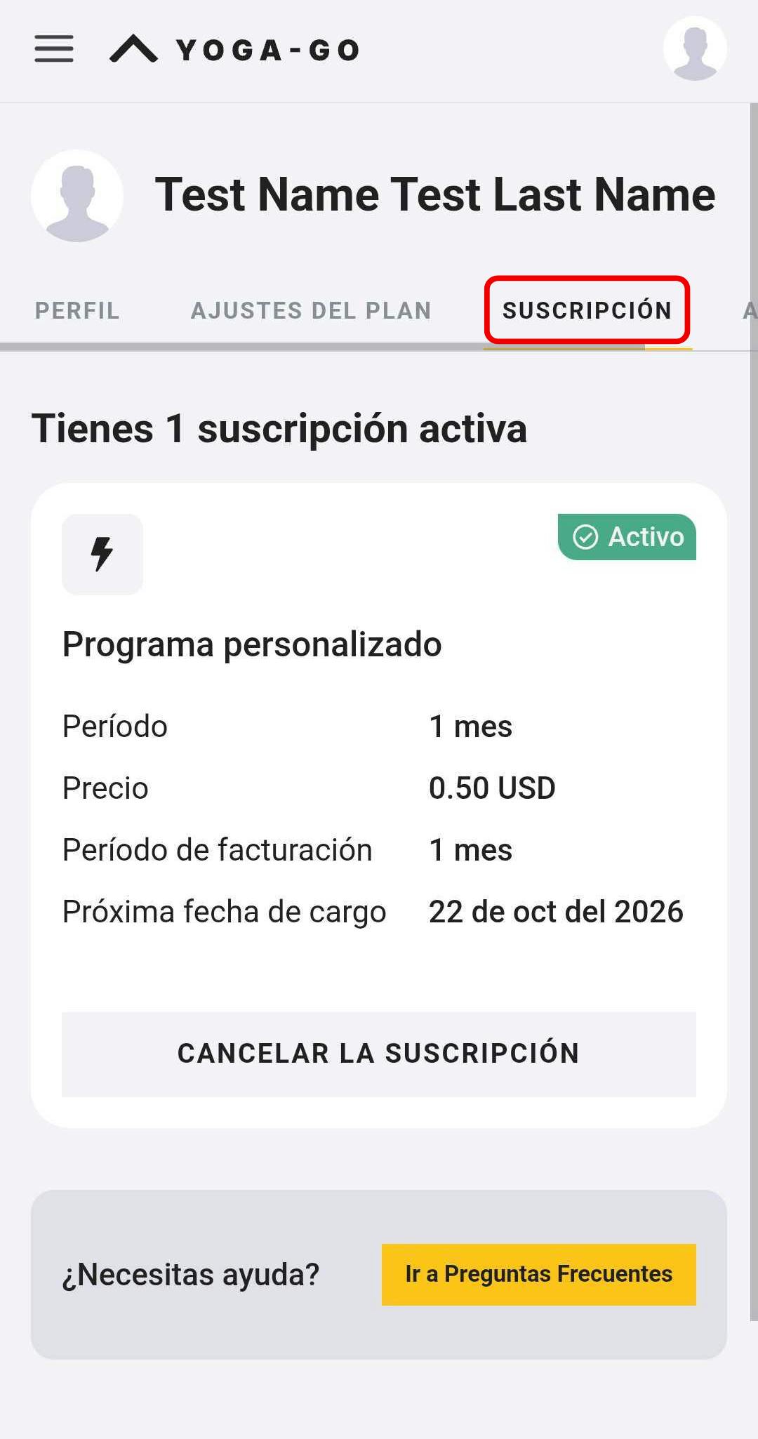 4. Pulsa la sección Suscripción. Allí encontrarás la información sobre tu suscripción actual.