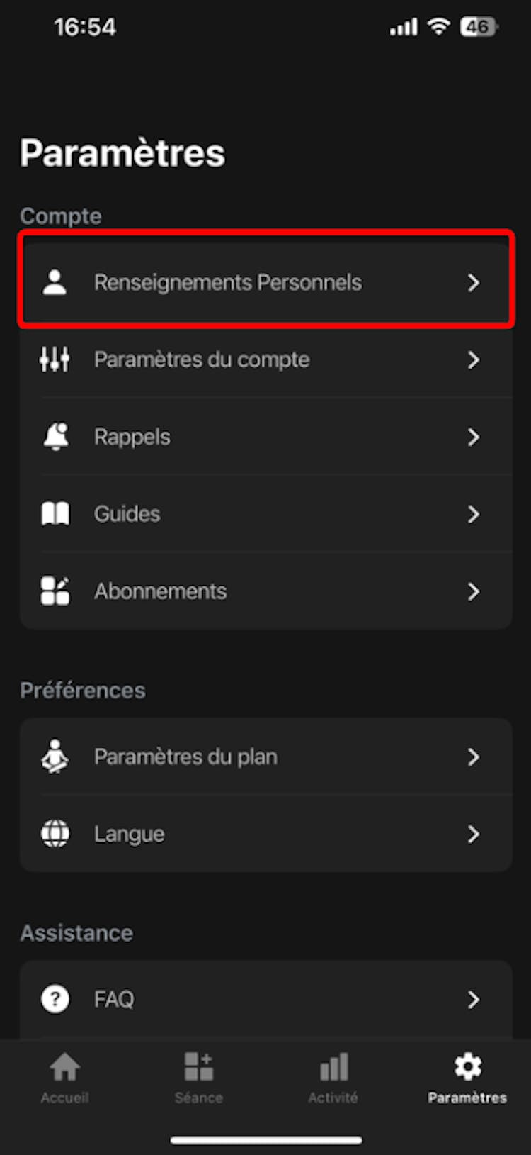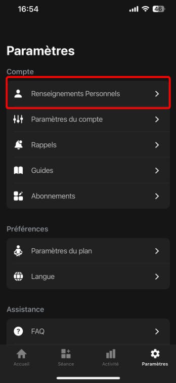Comment puis-je modifier ma taille, mon poids, mes unités ou mon e-mail ?
