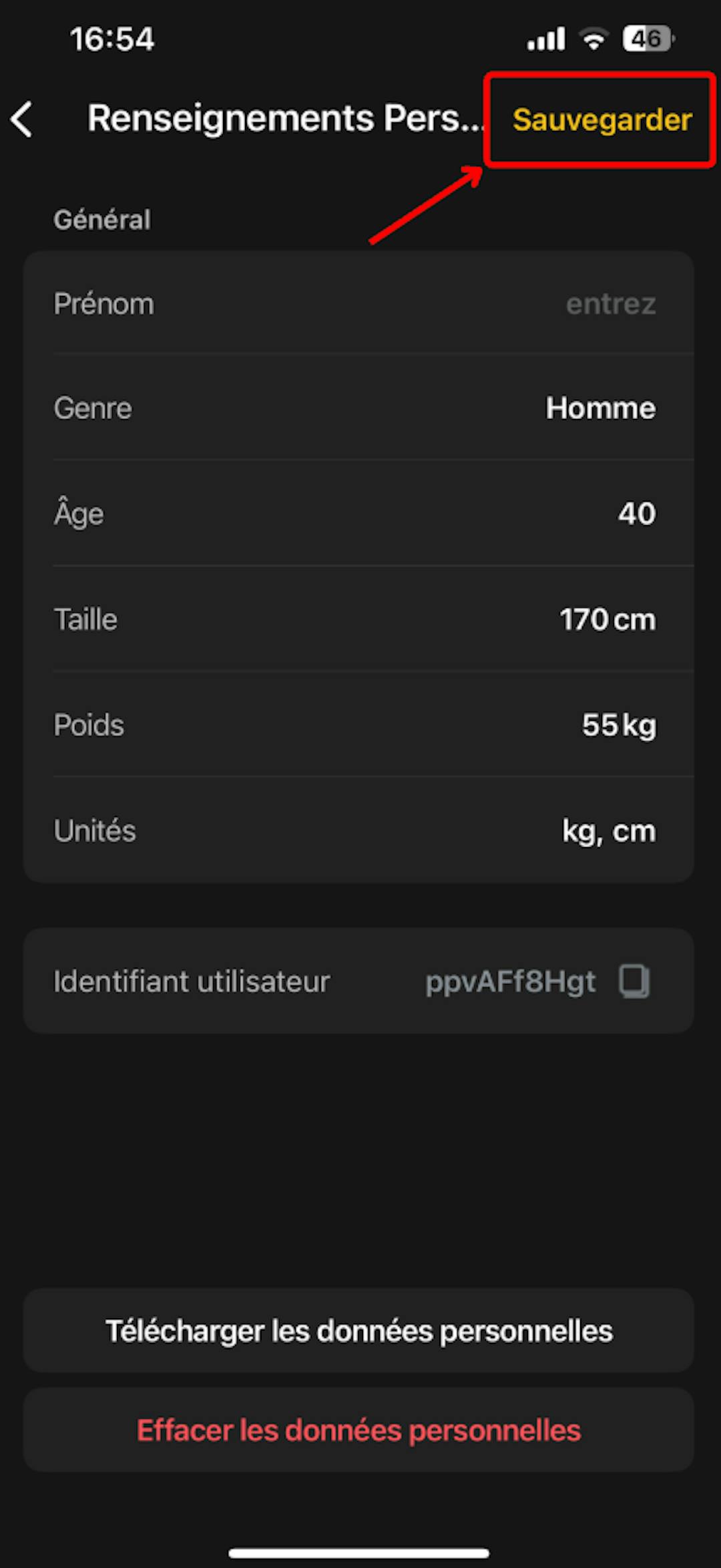 Pour mettre à jour votre taille, votre poids ou vos unités, suivez ces étapes: