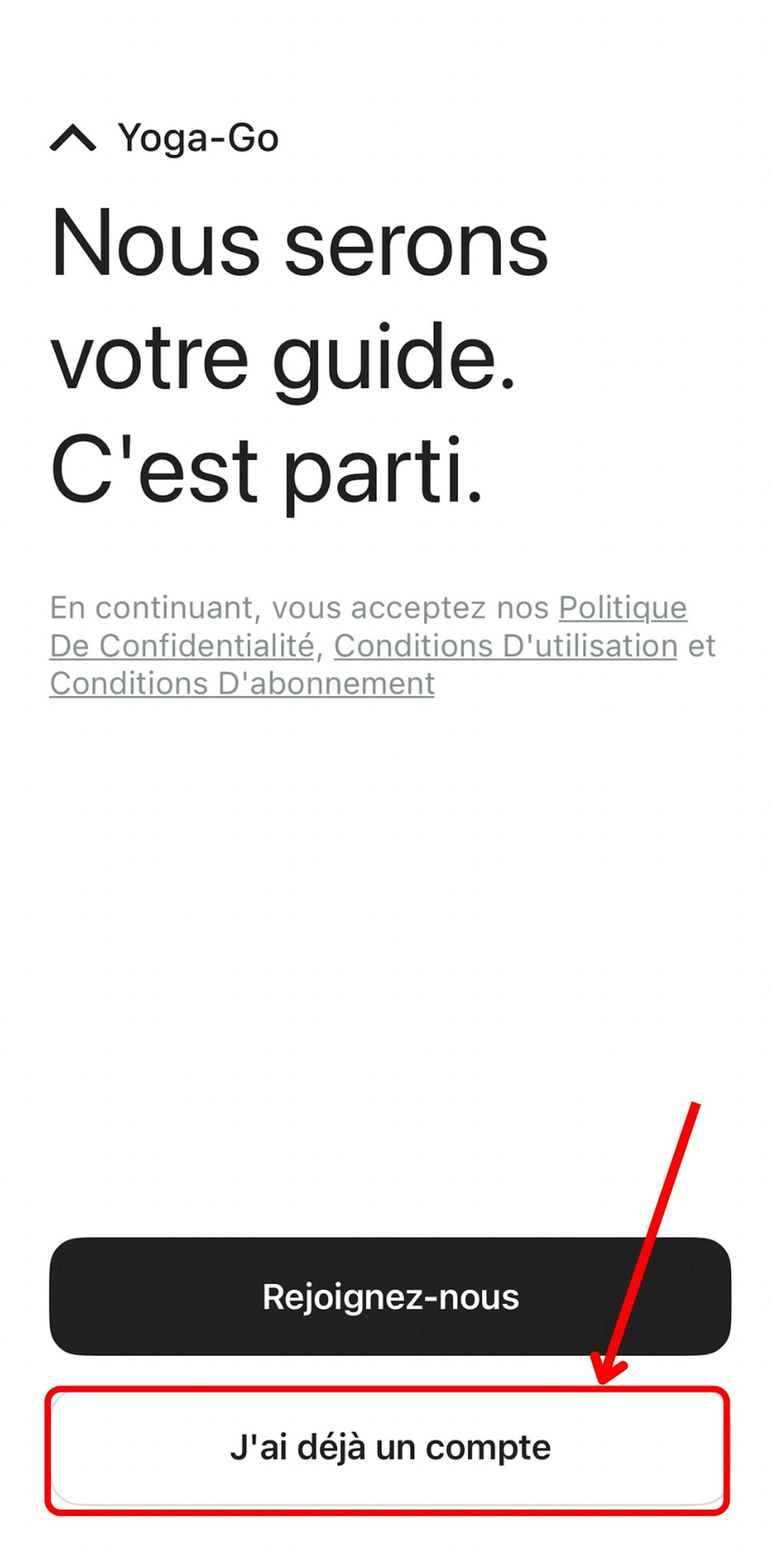 2. Ouvrez l'application et appuyez sur le bouton J'ai déjà un compte sur l'écran d'accueil.