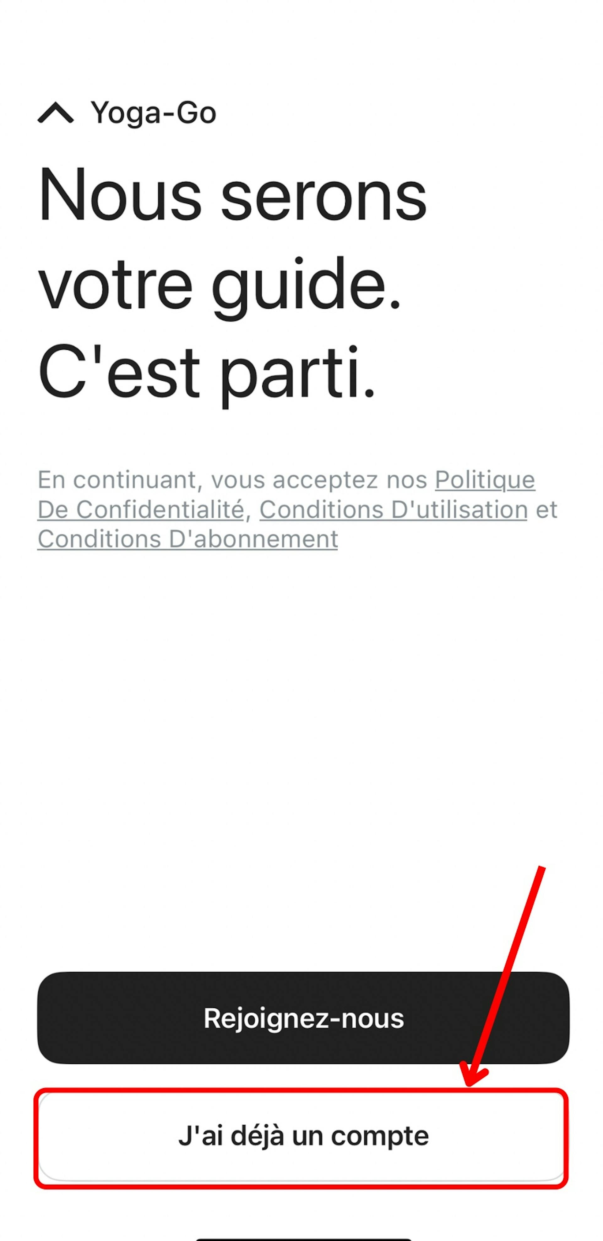 Si vous avez déjà acheté un abonnement, vous n’aurez pas besoin de payer à nouveau : il vous suffit d’installer l’application sur votre appareil. Lorsque vous ouvrez l’application, appuyez sur l’option J’ai déjà un compte, comme indiqué ci-dessous.