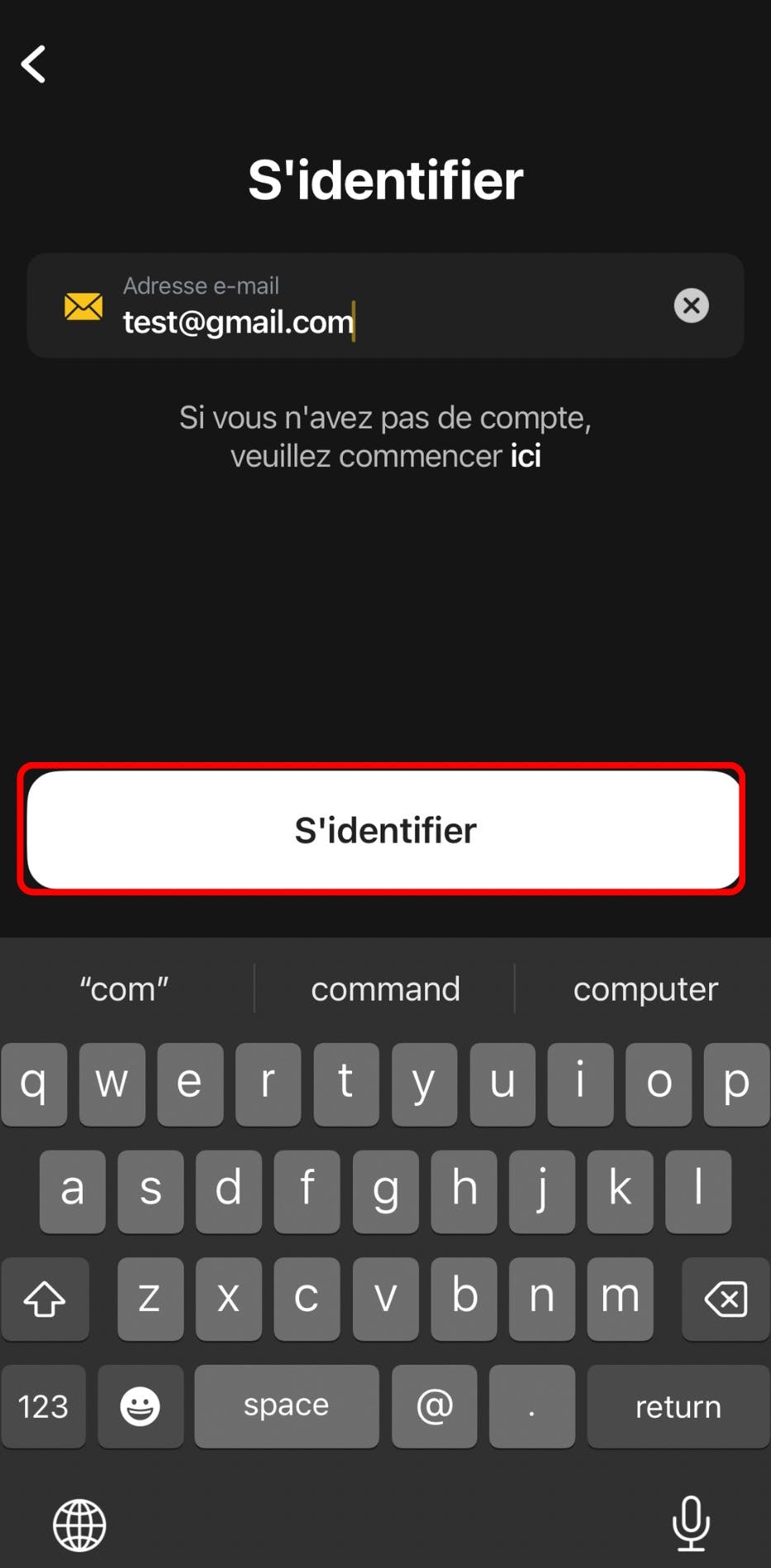 4. Touchez le bouton S'identifier pour accéder à votre compte, comme indiqué ci-dessous.