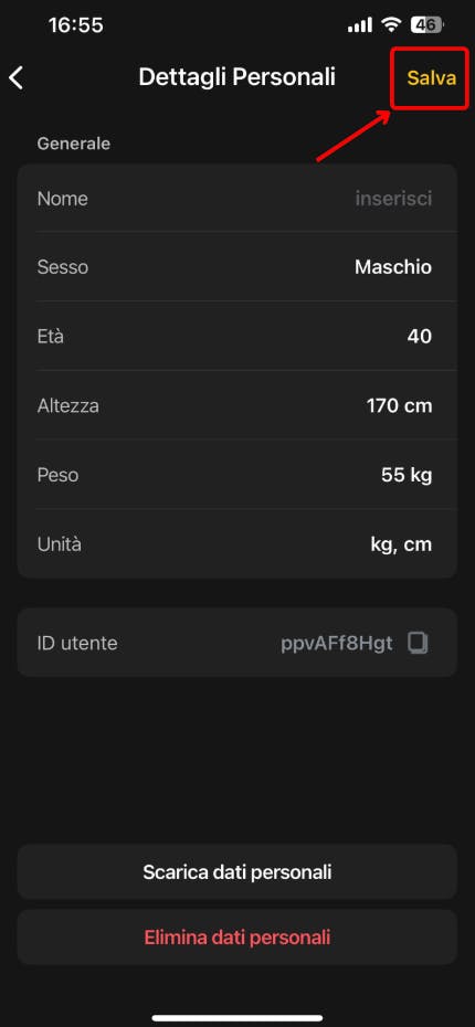 Per aggiornare altezza, peso o unità di misura, segui questi passaggi: