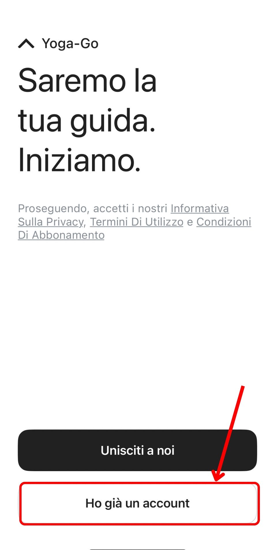 2. Apri l'app e tocca il pulsante Ho già un account sulla prima schermata.