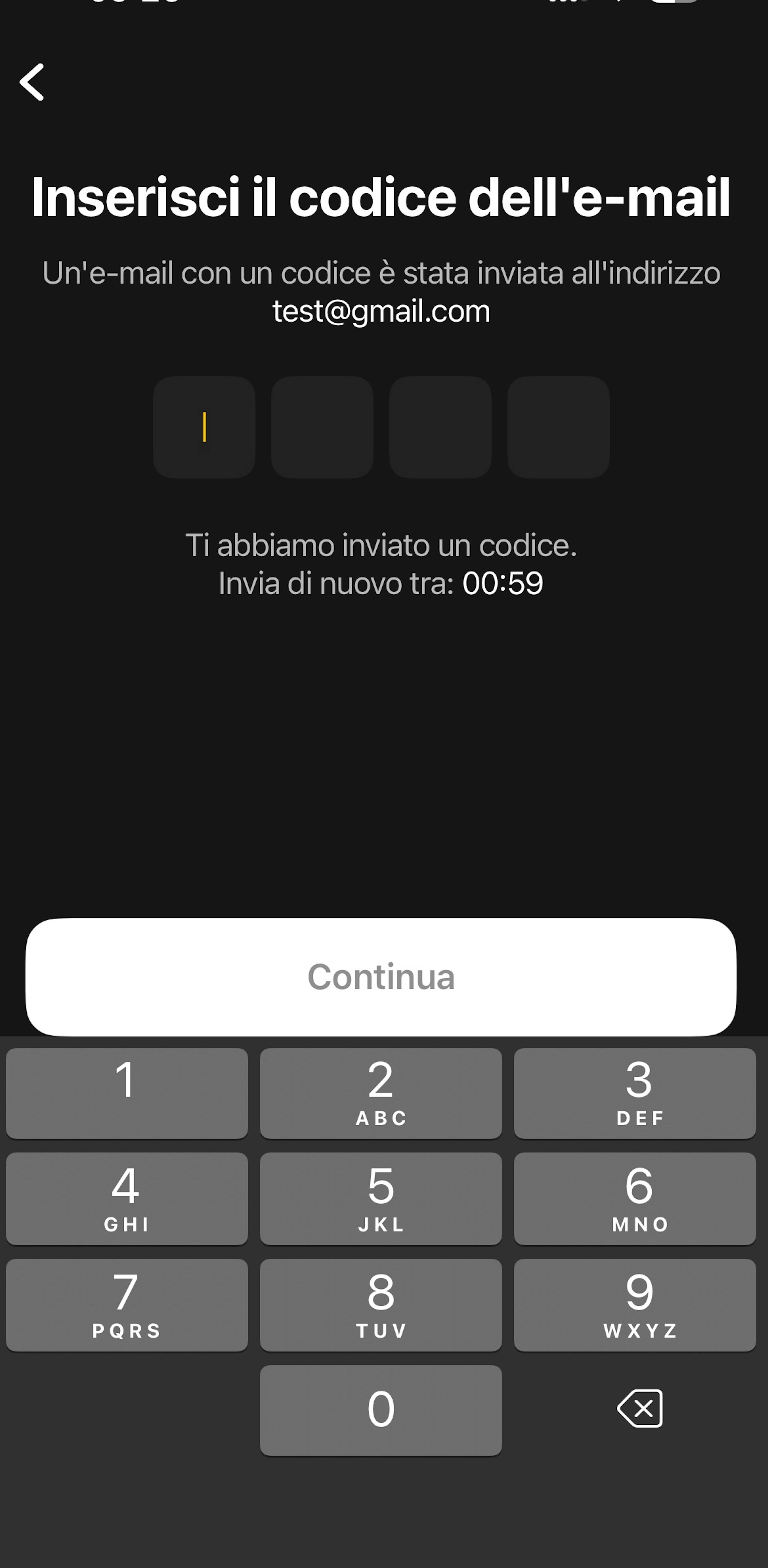 5. Inserisci il codice di sicurezza inviato alla tua email.