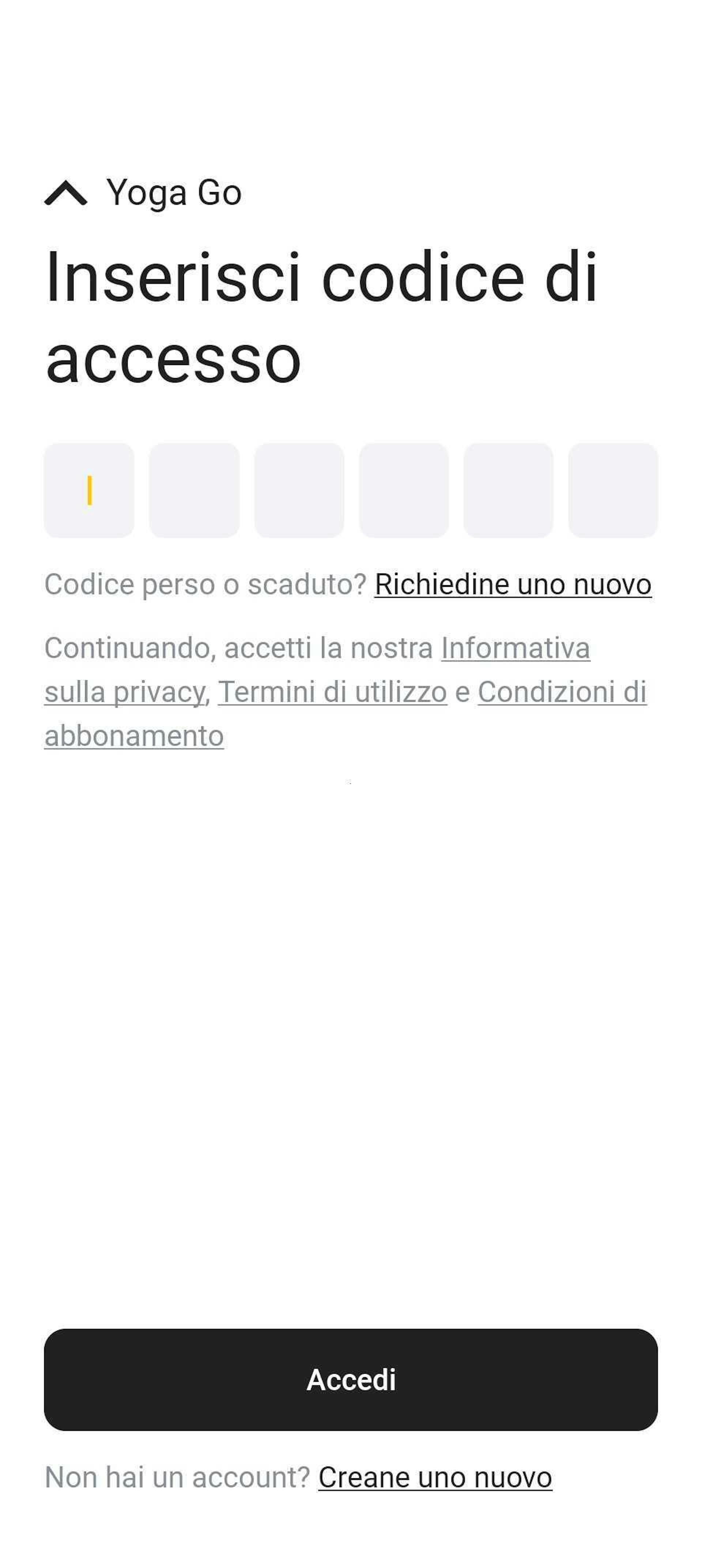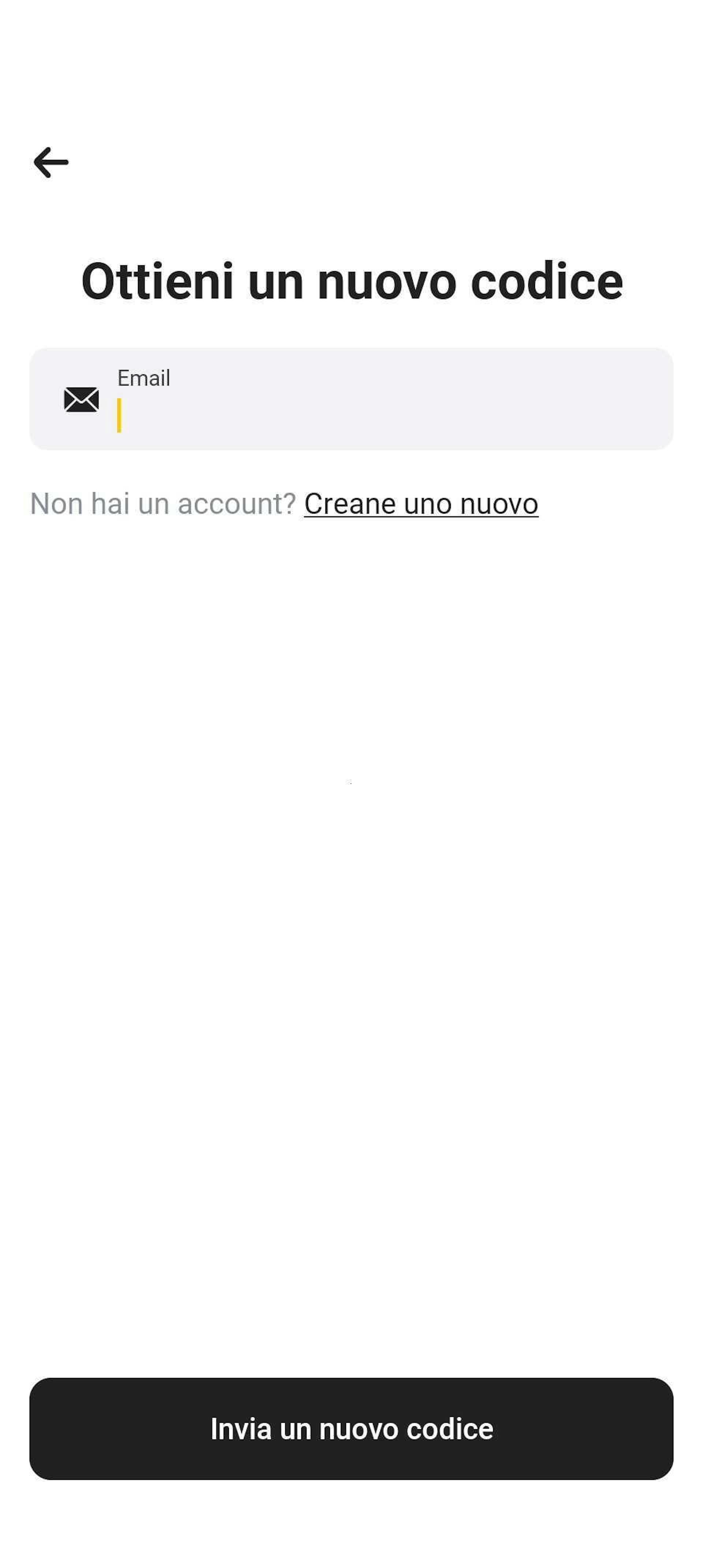 Se non hai un codice di accesso, tocca il pulsante Ottieni uno nuovo e inserisci l'indirizzo email che hai utilizzato per effettuare l'acquisto. Poi tocca il pulsante Invia un nuovo codice per ricevere il codice.