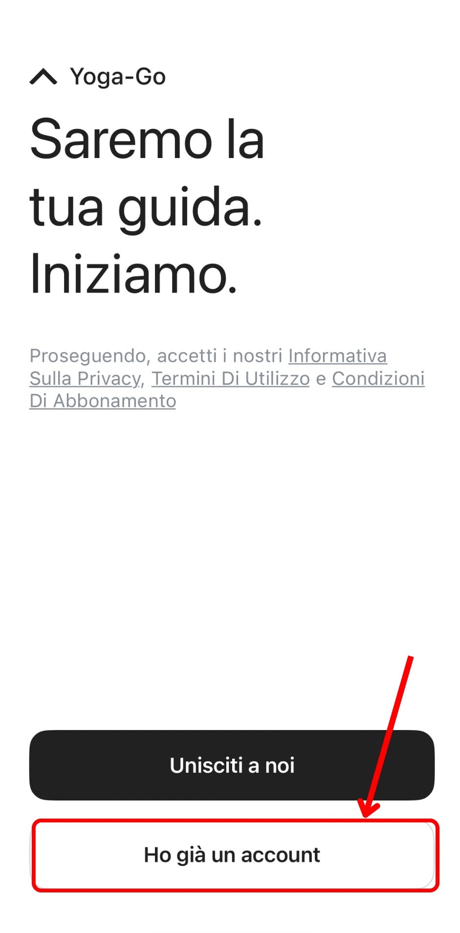 Se hai già acquistato un abbonamento, non dovrai pagare nuovamente: ti basterà installare l’app sul tuo dispositivo. All’apertura dell’app, tocca l’opzione Ho già un account come mostrato qui sotto.