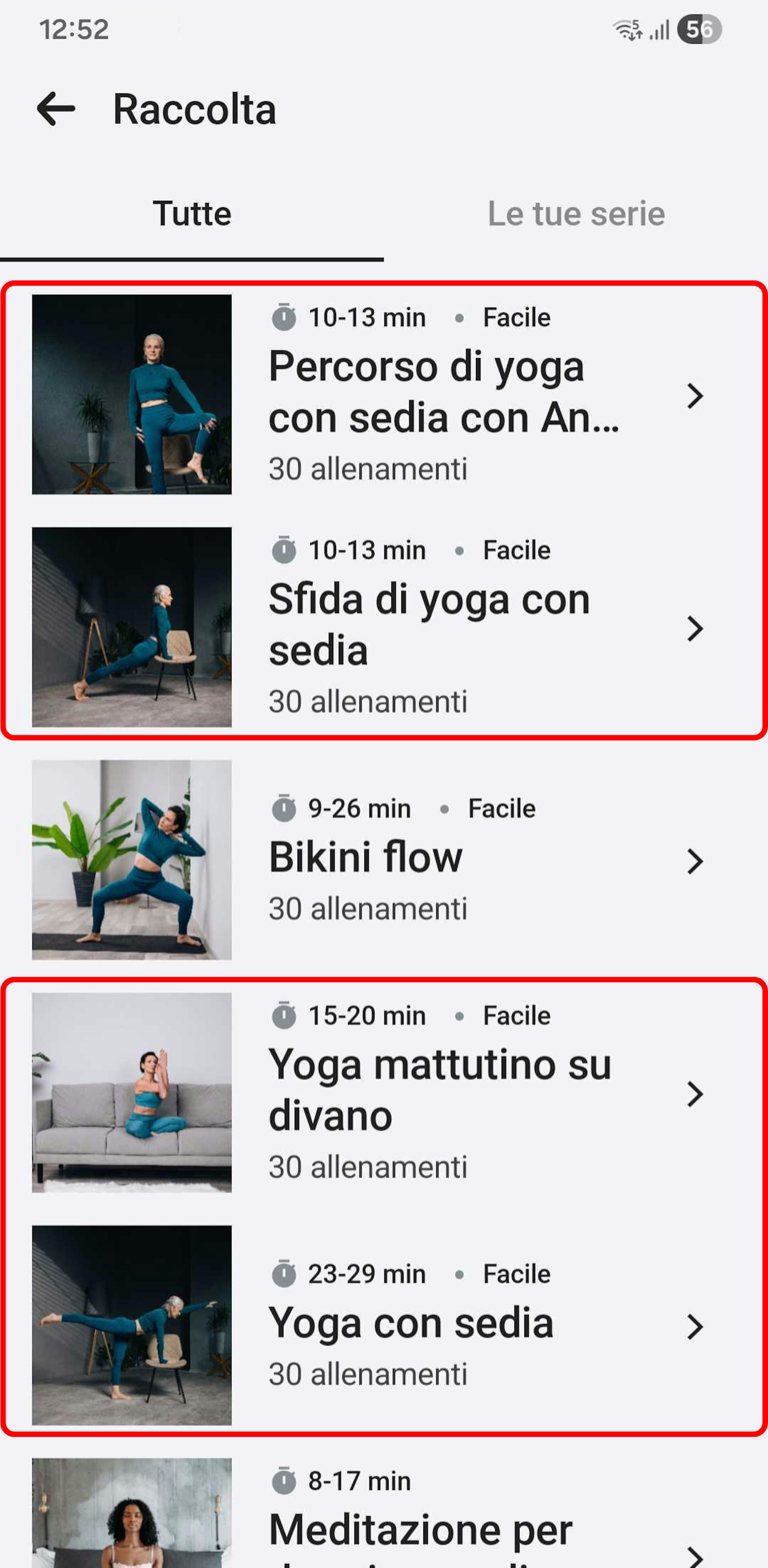 - Trova Yoga sul Divano del Mattino e Yoga sulla Sedia come indicato di seguito.