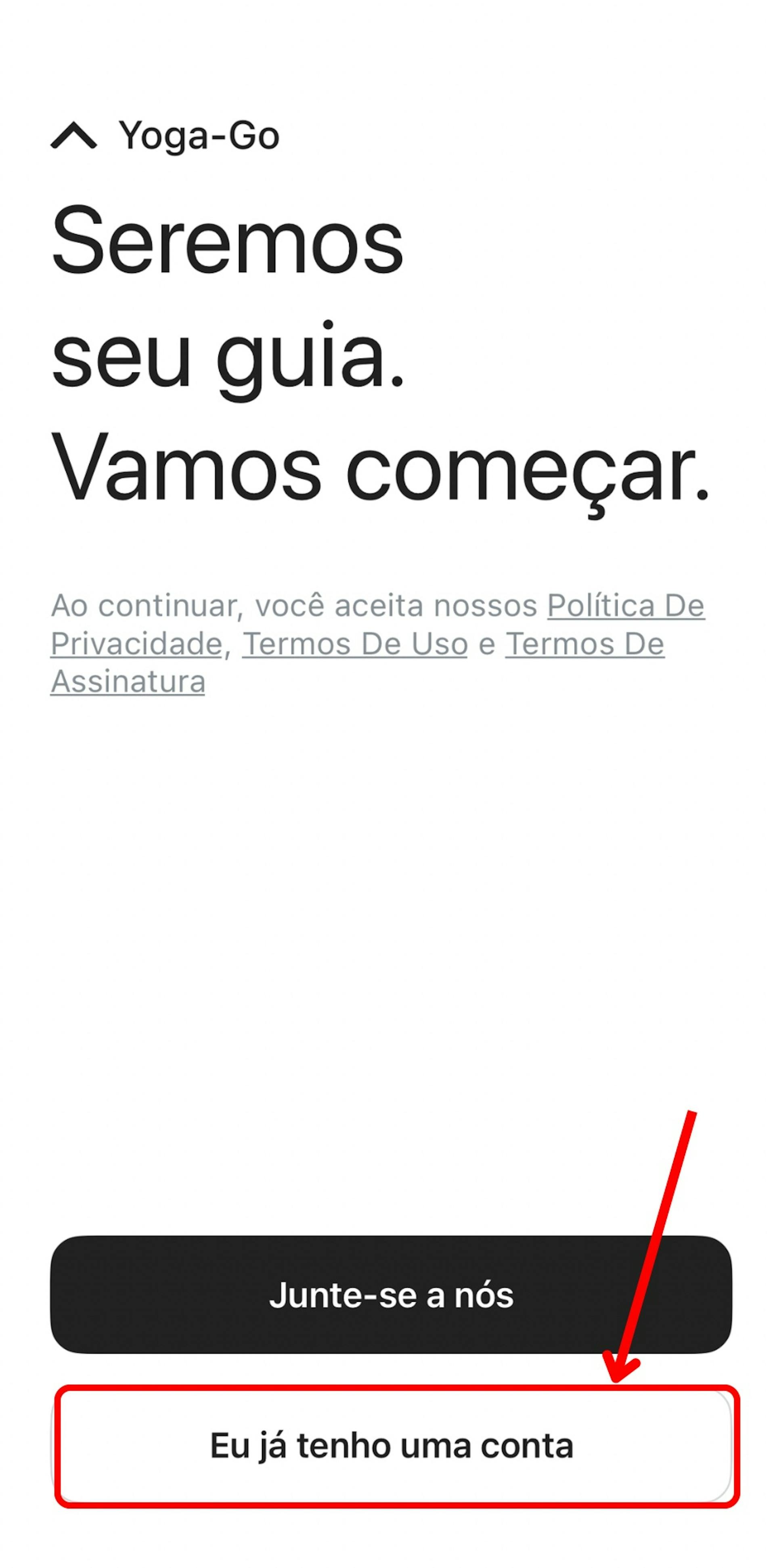 2. Abra o aplicativo e toque no botão Eu já tenho uma conta na primeira tela.