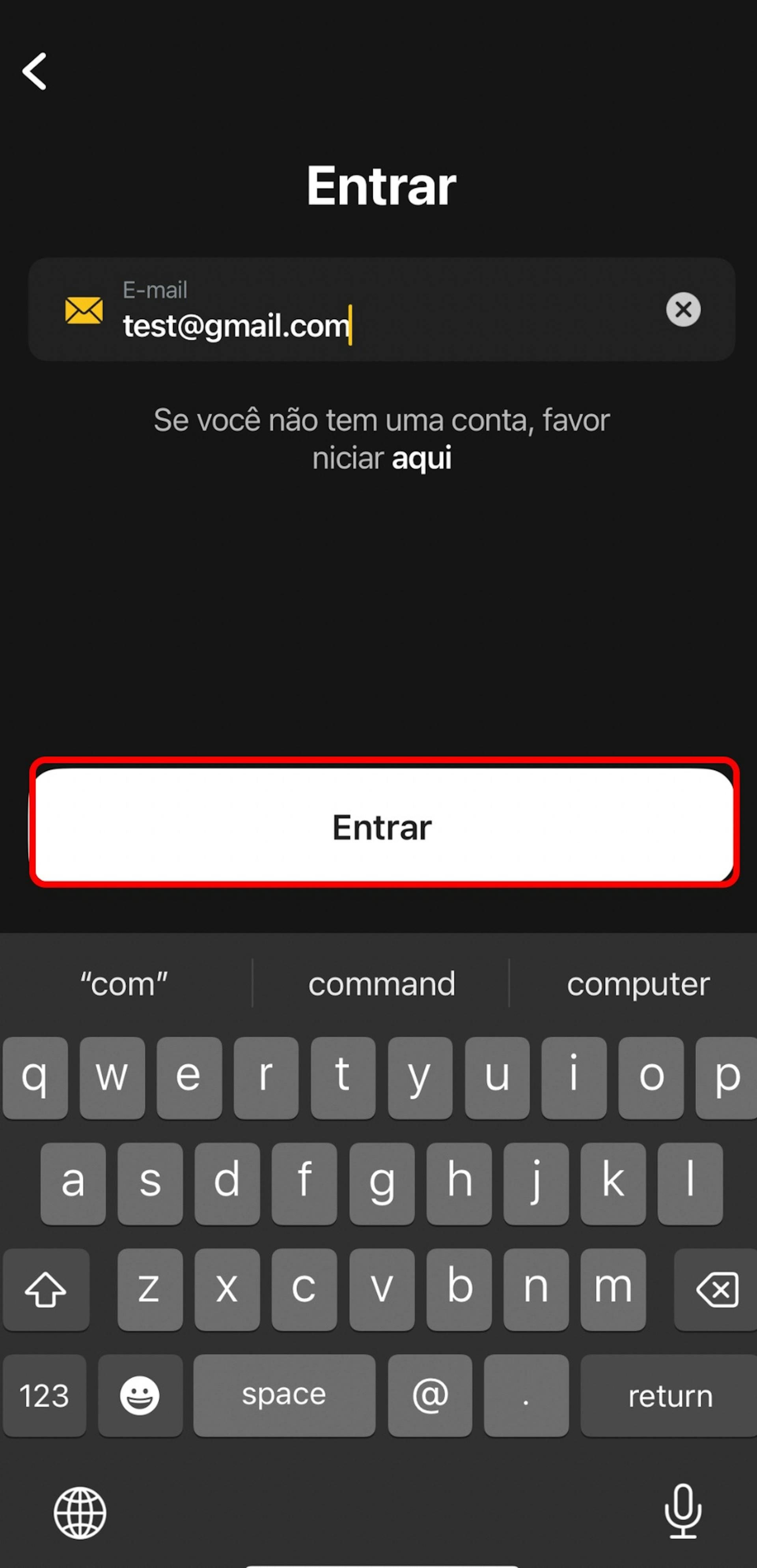 3. Digite o endereço de e-mail utilizado na compra do aplicativo.