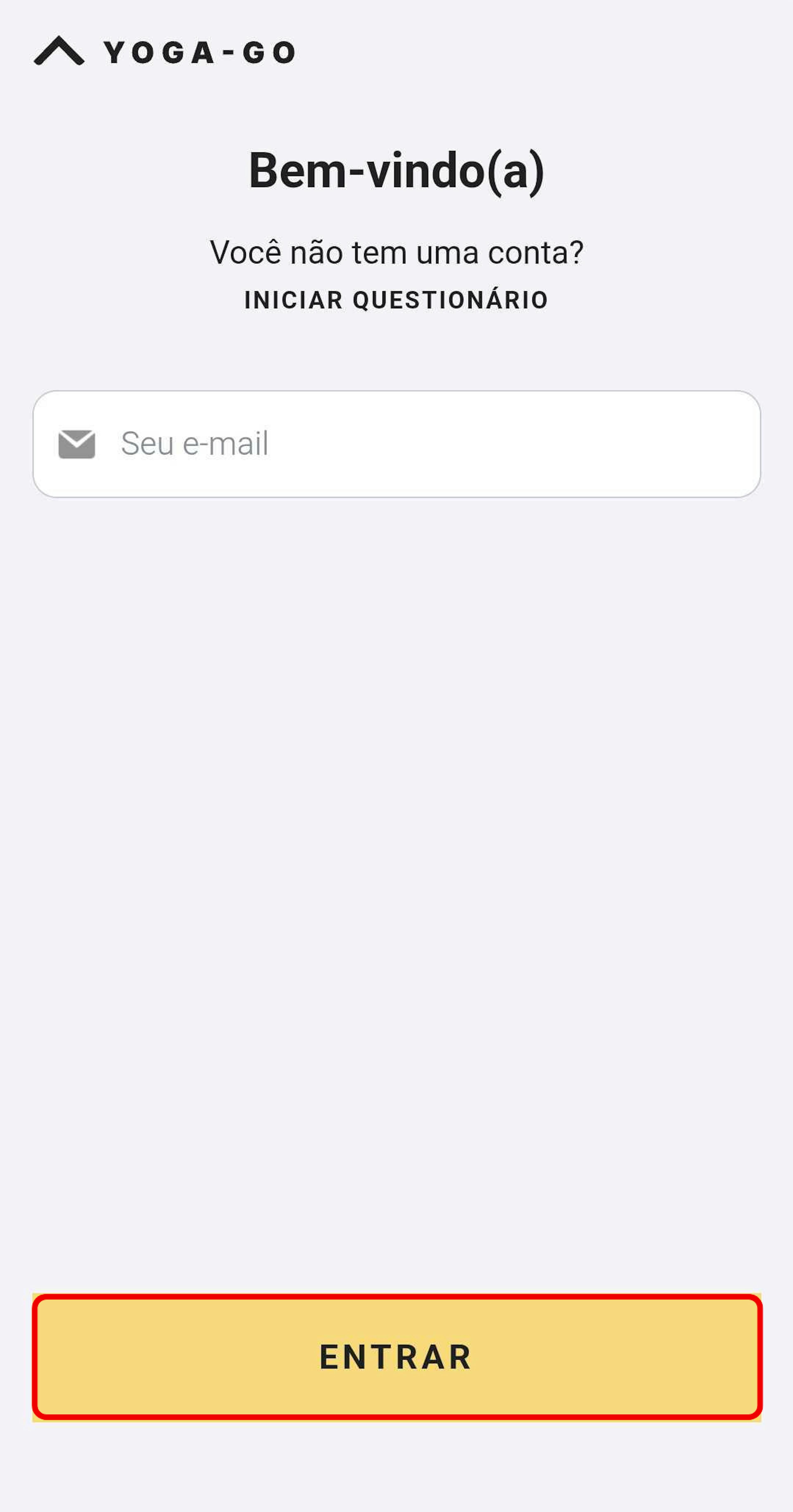 2. Insira suas informações de acesso e toque no botão ENTRAR conforme mostrado abaixo.