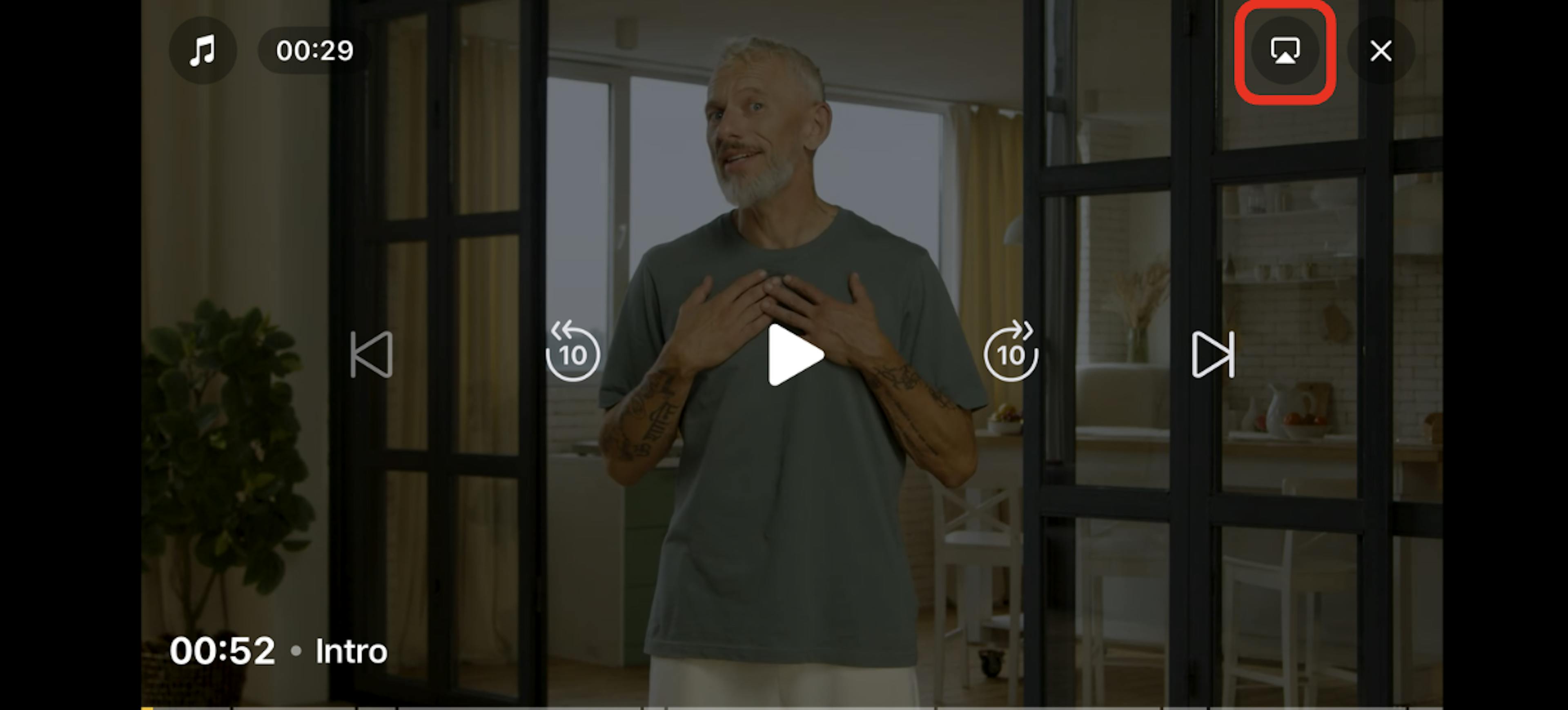 6. Para parar a transmissão, toque em AirPlay no aplicativo de onde você está transmitindo e, em seguida, toque em seu iPhone/iPad na lista.