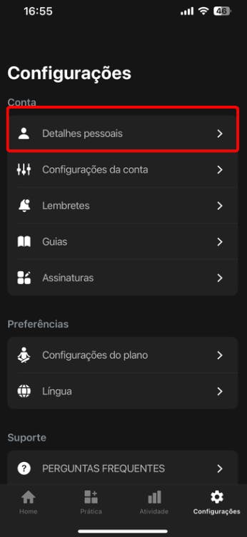 - Navegue até Configurações de Conta (que fica em Configurações).