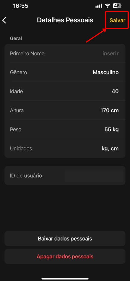 Para atualizar sua altura, peso ou unidades, siga estas etapas: