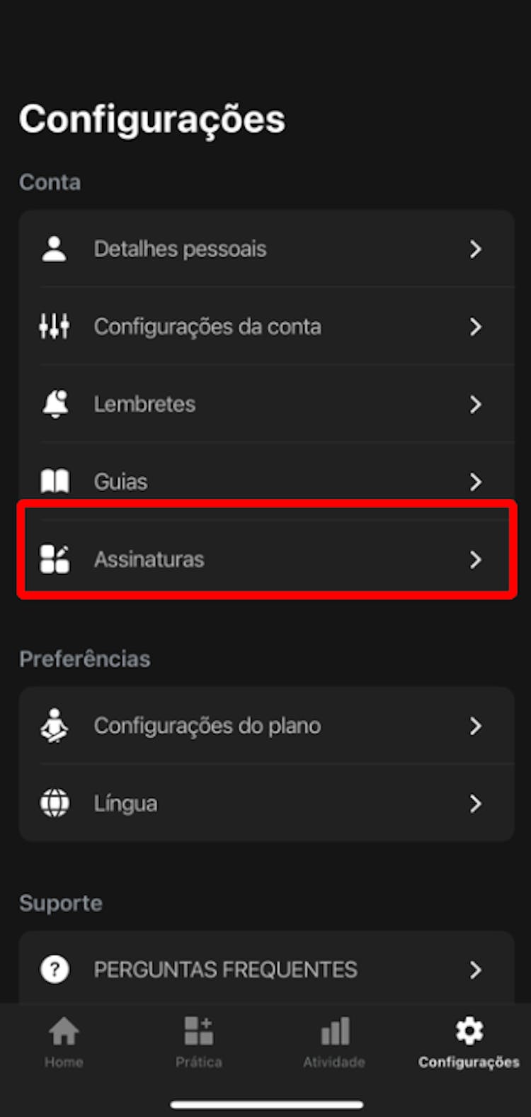 2. Acesse Assinaturas.
