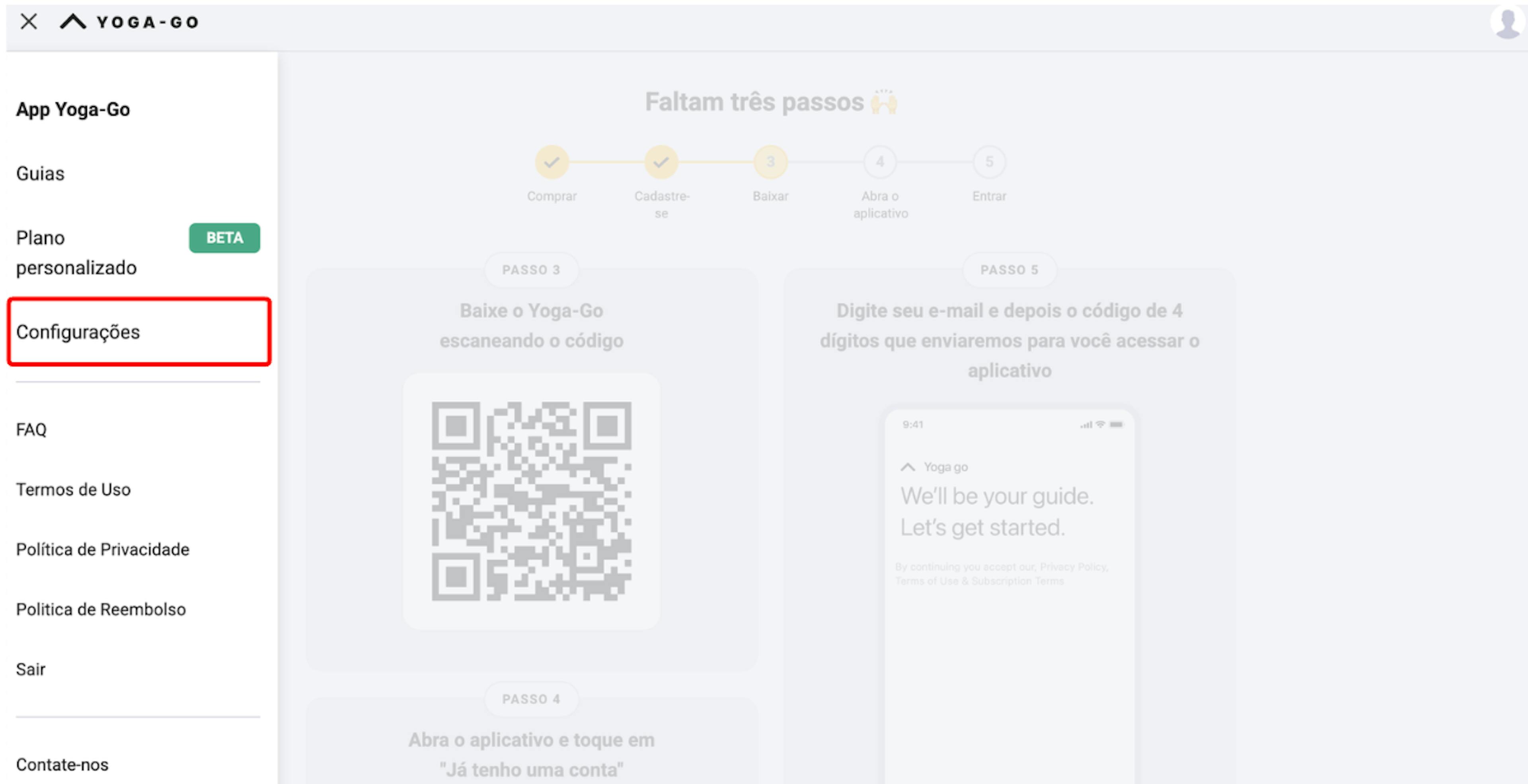 1. Abra a guia Configurações.