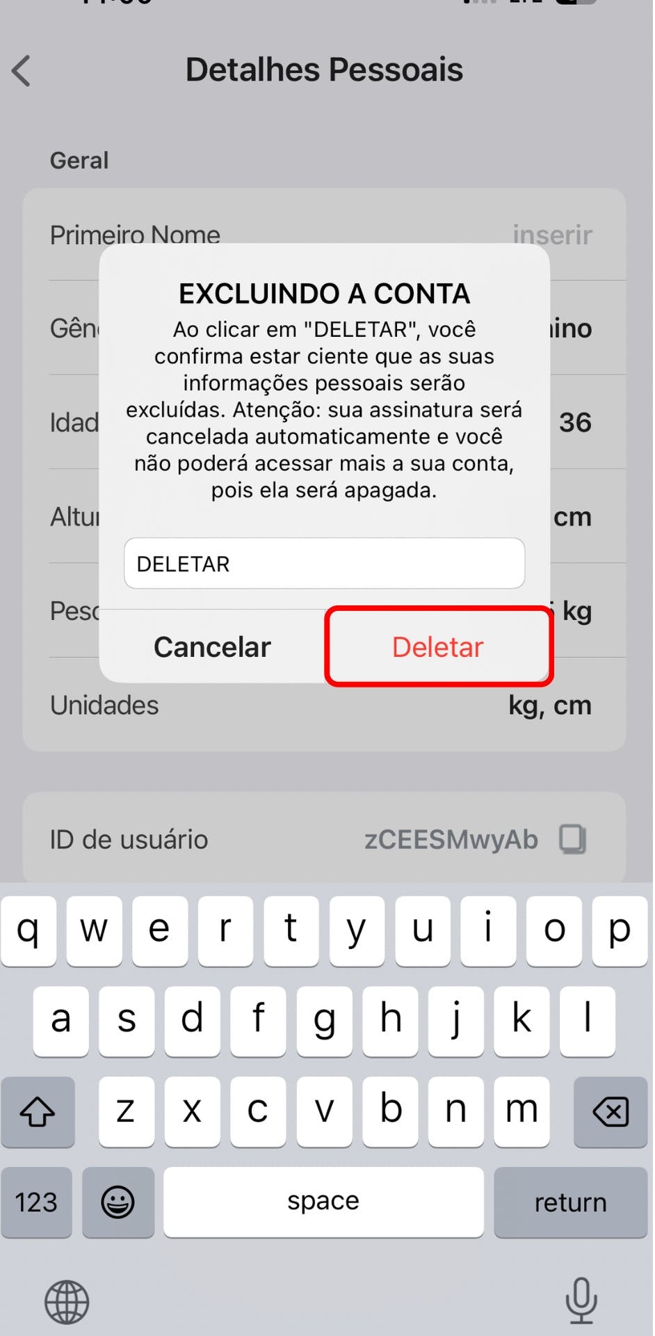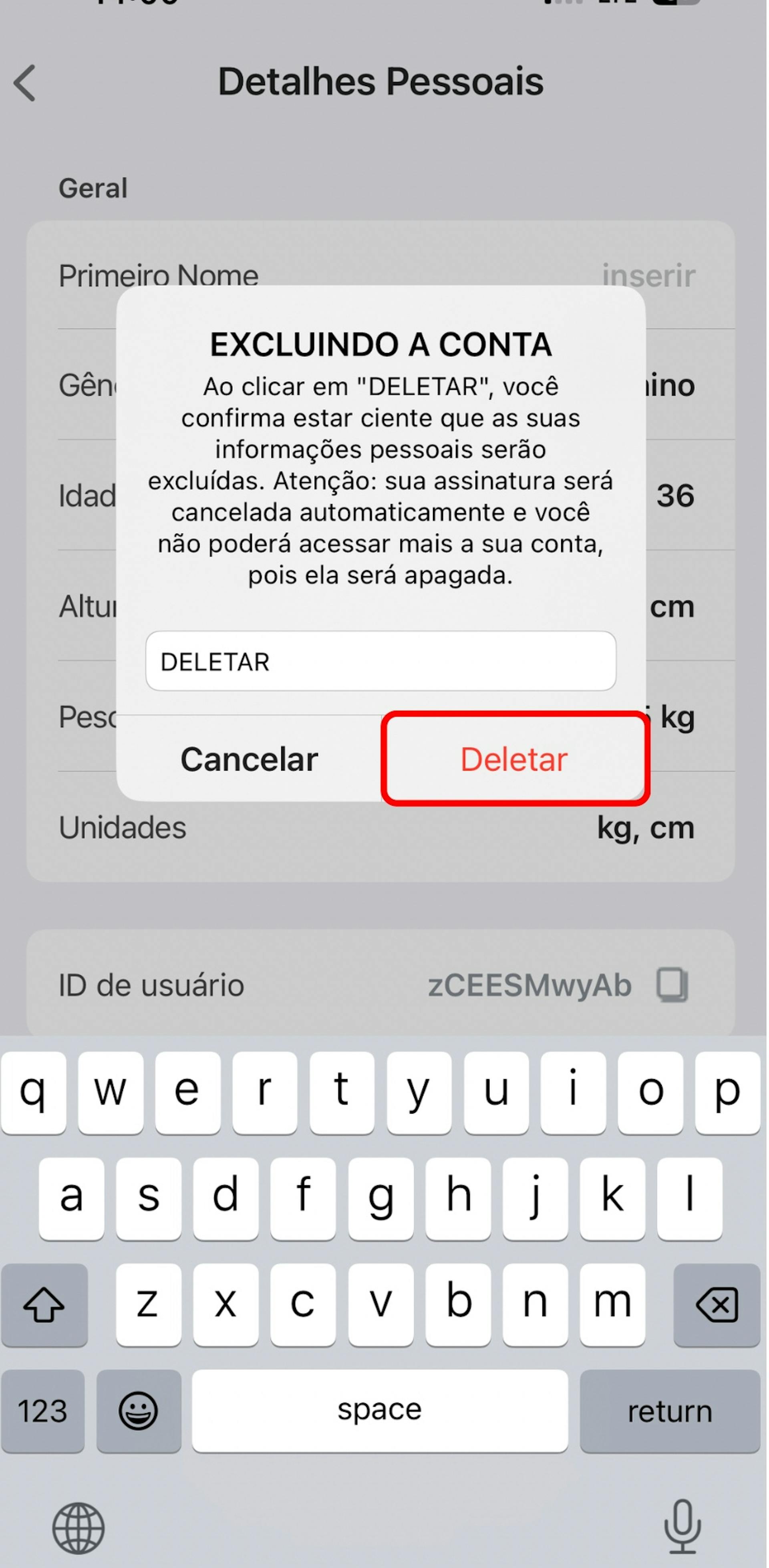 A exclusão dos dados pessoais resultará no cancelamento da assinatura. Se desejar continuar utilizando o aplicativo Yoga-Go até o fim do período de cobrança, entre em contato com nossa equipe de suporte para obter ajuda e recuperar o acesso ao aplicativo.