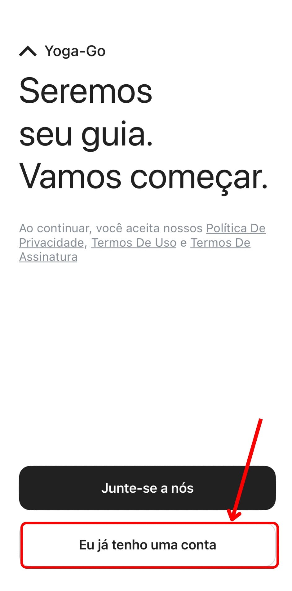 2. Abra o aplicativo e toque no botão Eu já tenho uma conta na primeira tela.