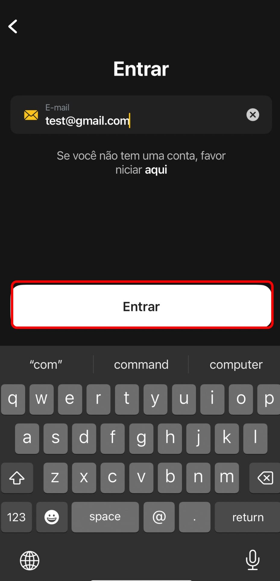 3. Digite o endereço de e-mail utilizado na compra do aplicativo.